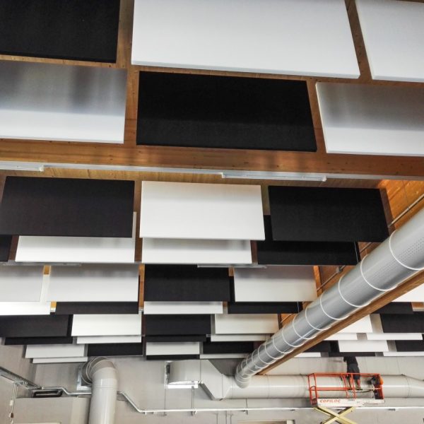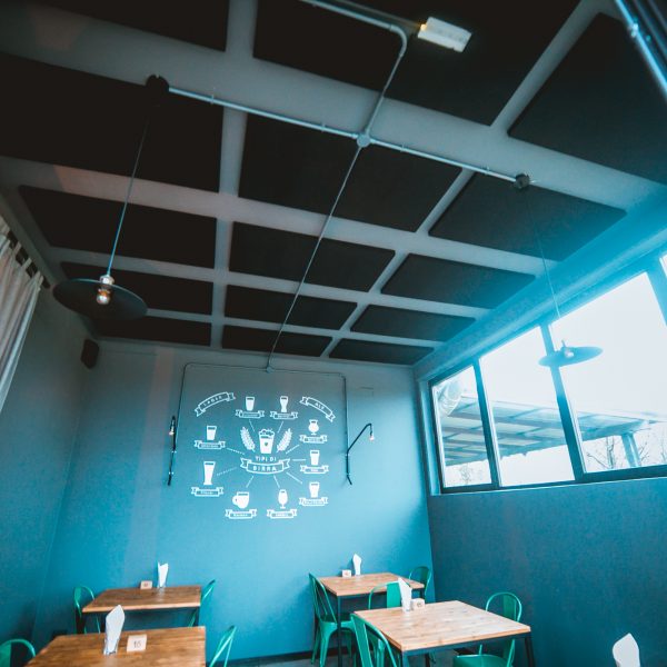 Per tal motivo, devono essere posizionati dei pannelli fonoassorbenti denominati POLYWALL BLS (nel colore bianco) o POLYWALL NLS (nel colore nero) che permettono di evitare il rimbalzo delle onde sonore su elementi rigidi come pareti, soffitti, vetri, ecc.